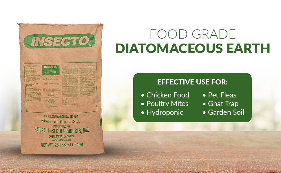 INSECTO is a diatomaceous earth (DE) insecticide designed for the control of stored grain insects. It can be applied to a wide range of commodities, including wheat, corn, barley, rice, oats, peas, rye, soybeans, peanuts, cocoa beans, and other feed or dry edible beans. Safe, effective, and non-staining, INSECTO provides long-lasting protection when used as a surface treatment or periodic top-dressing.